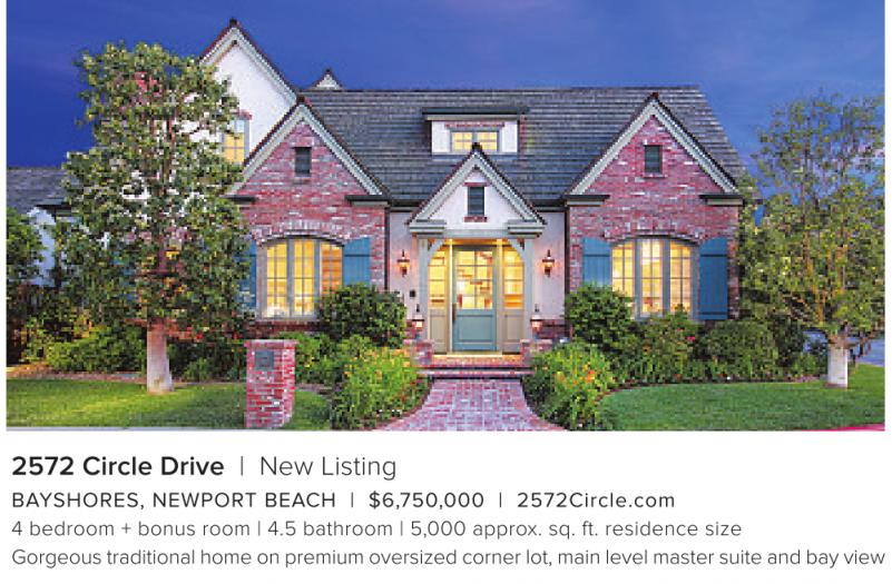 2572 Circle Drive | New Listing BAYSHORES, NEWPORT BEACH | $6,750,000 | 2572Circle.com 4 bedroom + bonus room | 4.5 bathroom | 5,000 approx. sq. ft. residence size Gorgeous traditional home on premium oversized corner lot, main level master suite and bay view