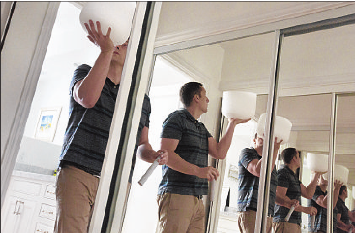 grounds — first with a crystal singing bowl, then a brass one — with the