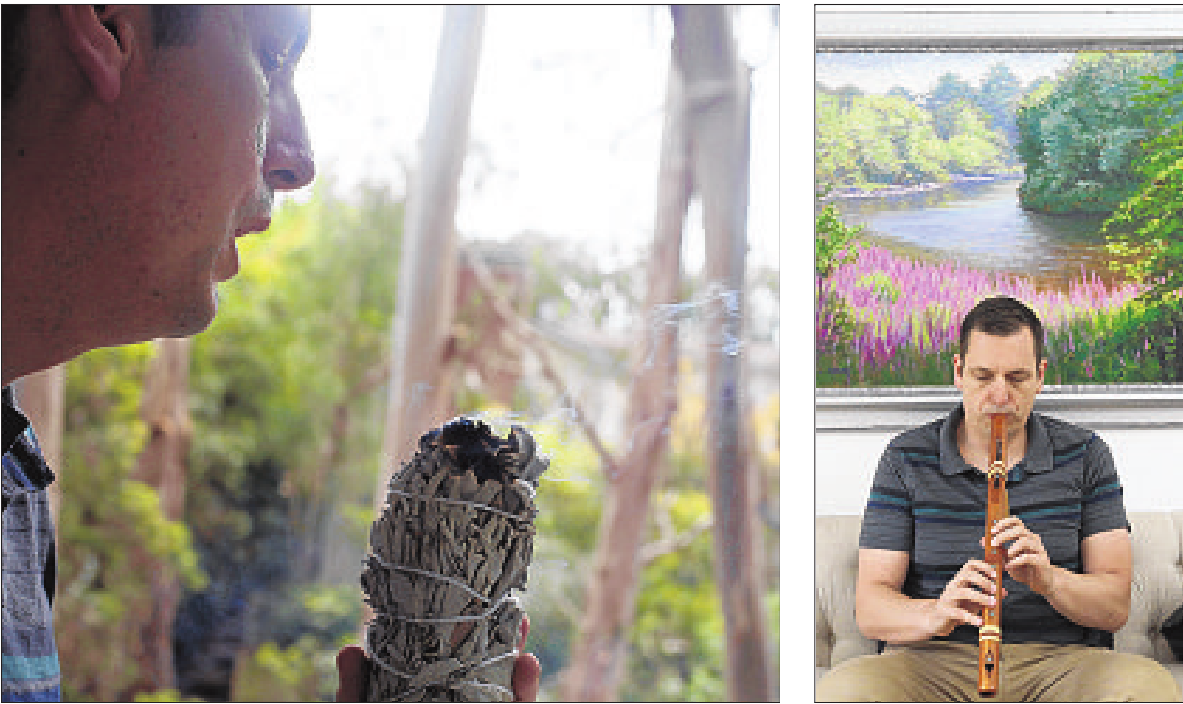 American traditions, Kurpil meditates in a home, then walks around the