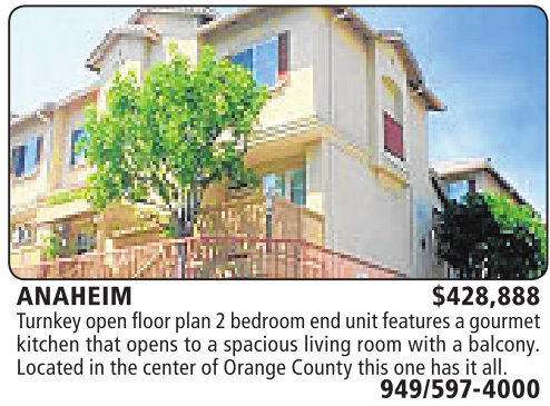 ANAHEIM $428,888 Turnkeyopen floorplan2bedroomend unit featuresagourmet kitchen that opens to aspacious living room with abalcony. Located in thecenterofOrange County this onehas it all.