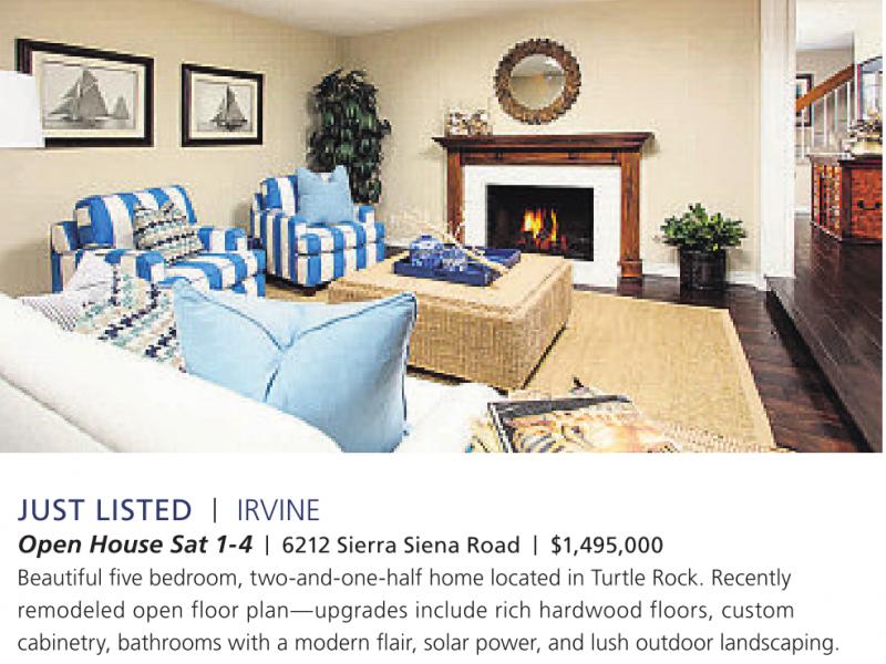JUST LISTED | IRVINE Open House Sat 1-4 | 6212 Sierra Siena Road | $1,495,000 Beautiful five bedroom, two-and-one-half home located in Turtle Rock. Recently remodeled open floor plan—upgrades include rich hardwood floors, custom cabinetry, bathrooms with a modern flair, solar power, and lush outdoor landscaping.