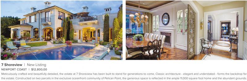 7 Shoreview | New Listing NEWPORT COAST | $12,800,00 Meticulously crafted and beautifully detailed, the estate at 7 Shoreview has been built to stand for generations to come. Classic architecture - elegant and understated - forms the backdrop for the estate. Constructed on two parcels in the exclusive oceanfront community of Pelican Point, the generous space is reflected in the ample 11,000 square foot home and the abundant grounds.