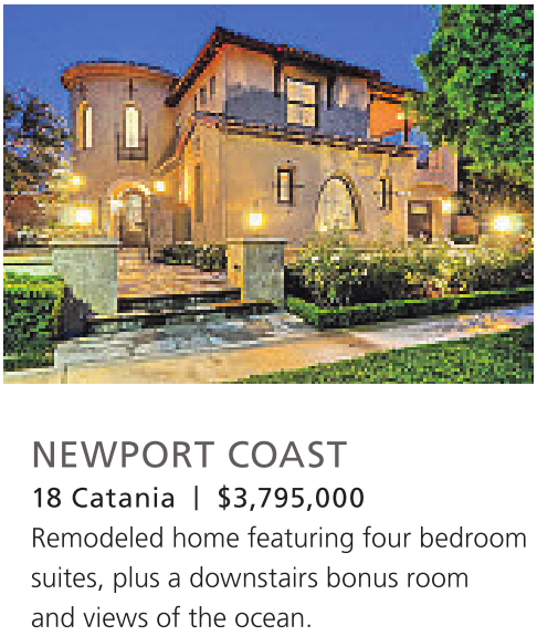 18 Catania | $3,795,000 Remodeled home featuring four bedroom suites, plus a downstairs bonus room and views of the ocean.