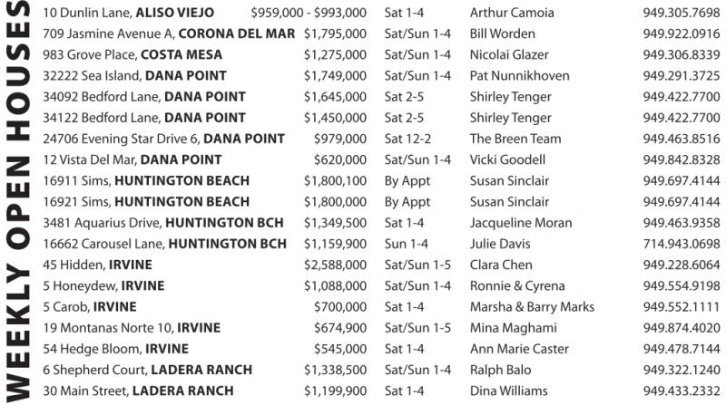 10 Dunlin Lane, ALISO VIEJO $959,000 -$993,000 Sat1-4 Arthur Camoia 949.305.7698