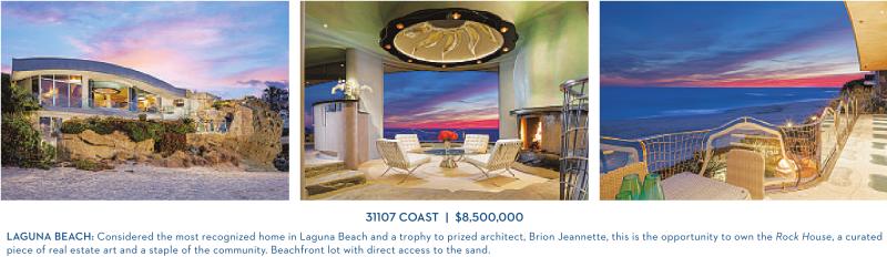 LAGUNA BEACH: Considered the most recognized home in Laguna Beach and a trophy to prized architect, Brion Jeannette, this is the opportunity to own the Rock House, a curated piece of real estate art and a staple of the community. Beachfront lot with direct access to the sand.