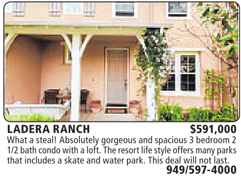 LADERA RANCH $591,000 What asteal! Absolutelygorgeousand spacious 3bedroom2 1/2bathcondo with aloft. Theresortlife styleoffersmanyparks that includes askate andwaterpark. This deal will notlast.