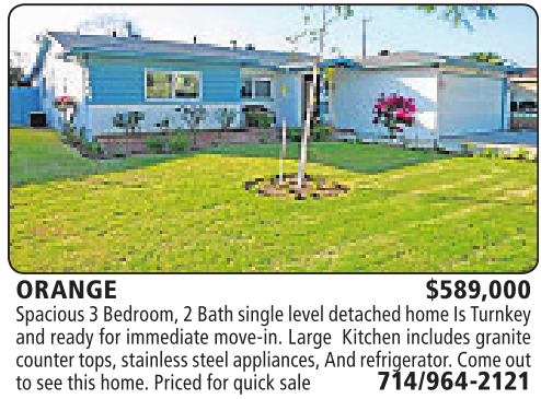 ORANGE $589,000 Spacious 3Bedroom, 2Bathsingle leveldetachedhome Is Turnkey and ready for immediate move-in. Large Kitchen includes granite counter tops,stainlesssteel appliances,And refrigerator.Comeout to seethishome. Priced for quicksale 714/964-2121