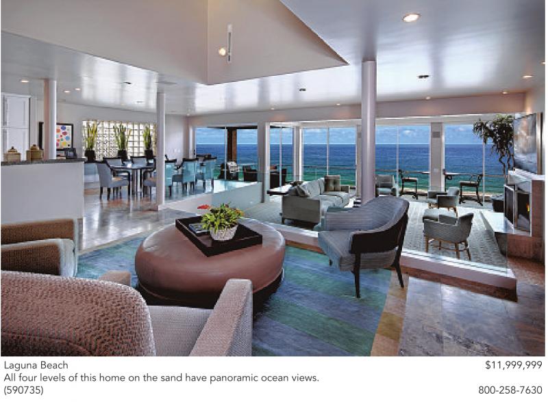 Laguna Beach $11,999,999 All four levels of this home on the sand have panoramic ocean views. (590735) 800-258-7630