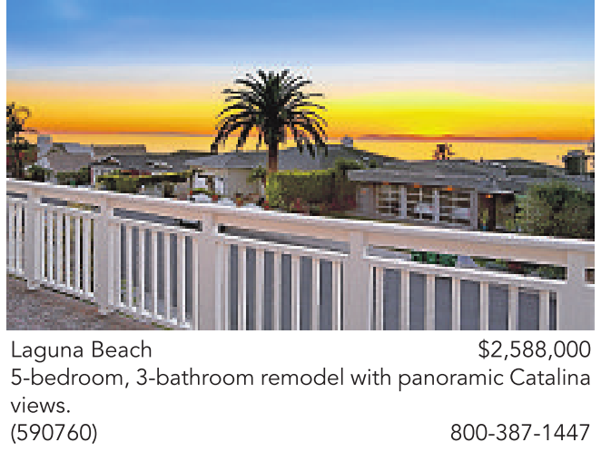 Laguna Beach $2,588,000 5-bedroom, 3-bathroom remodel with panoramic Catalina views. (590760) 800-387-1447