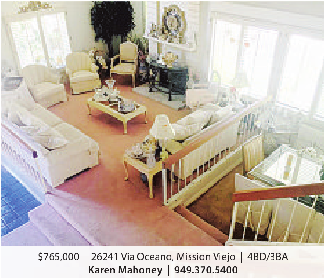 $765,000 | 26241 Via Oceano, Mission Viejo | 4BD/3BA Karen Mahon