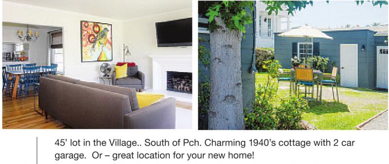 45’ lot in the Village.. South of Pch. Charming 1940’s cottage with 2 car garage. Or – great location for your new home!