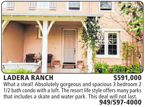 LADERA RANCH $591,000 What asteal!Absolutelygorgeousand spacious 3bedroom2 1/2bathcondo with aloft. Theresortlife styleoffersmanyparks that includes askate andwater park. This deal will notlast.