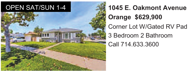 1045 E. Oakmont Avenue Orange $629,900 Corner Lot W/Gated RV Pad 3 Bedroom 2 Bathroom Call 714.633.3600
