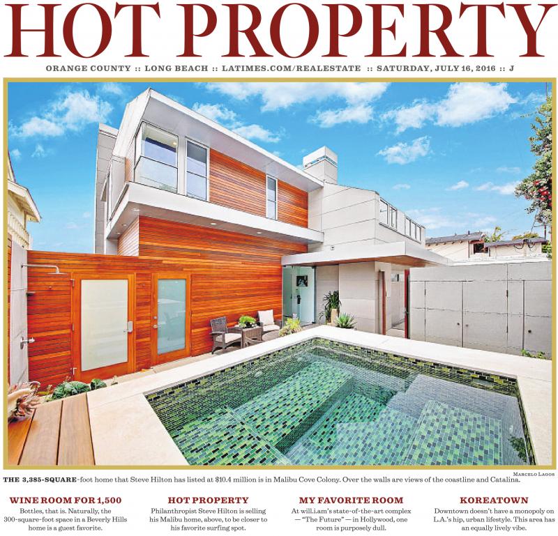 Marcelo Lagos THE 3,385-SQUARE-foot home that Steve Hilton has listed at $10.4 million is in Malibu Cove Colony. Over the walls are views of the coastline and Catalina.