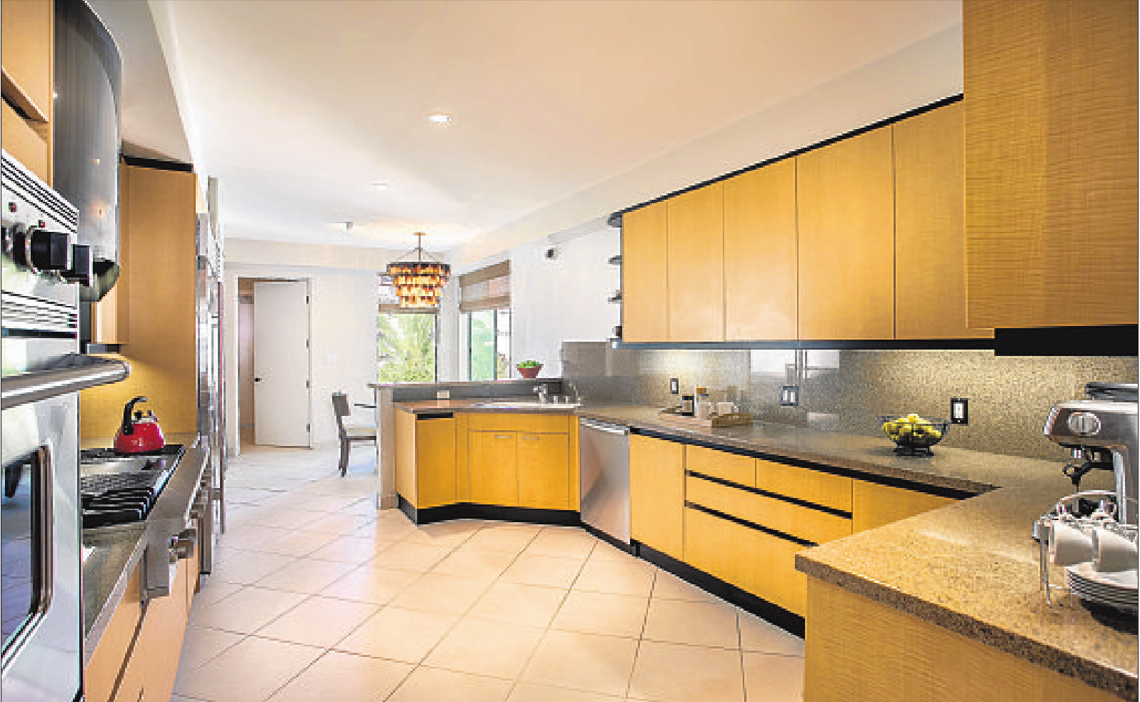 Aden is currently being used as amedia room/office, and there’s also an enclosed laundry room off the kitchen. The master suite, with two walk-in closets, his and hers bathrooms and a fireplace, takes in views of Palisades Park and the coastline.