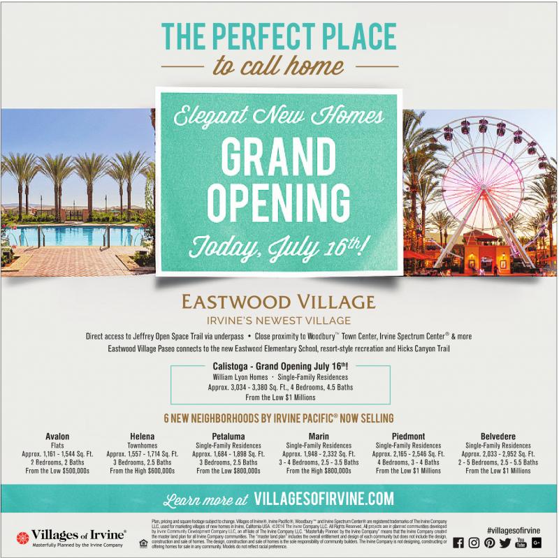 Town Center, Irvine Spectrum Center® & more Eastwood Village Paseo connects to the new Eastwood Elementary School, resort-style recreation and Hicks Canyon Trail