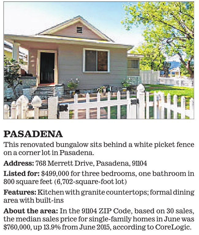 PASADENA This renovated bungalow sits behind a white picket fence on a corner lot in Pasadena.