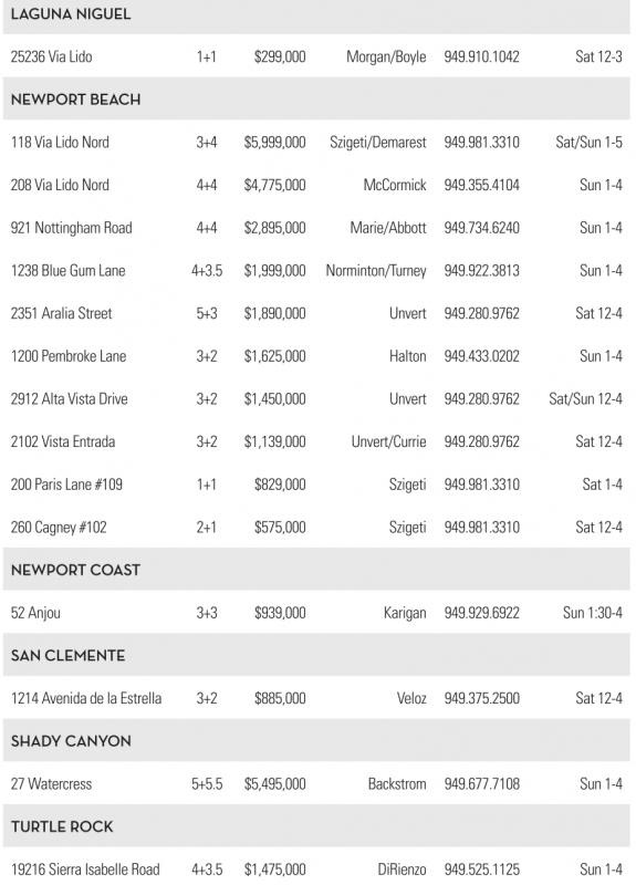 118 ViaLidoNord 3+4 $5,999,000 Szigeti/Demarest 949.981.3310 Sat/Sun 1-5