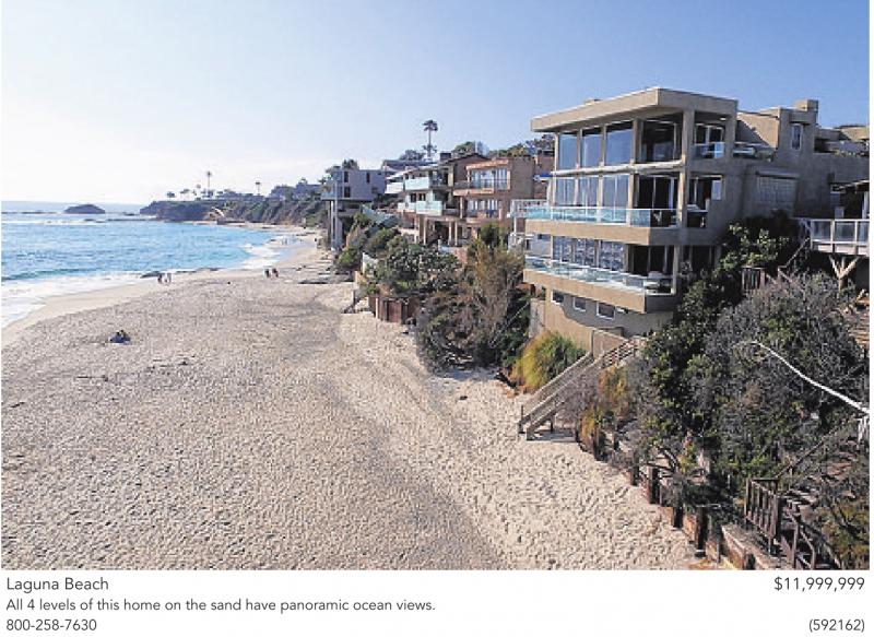 Laguna Beach $11,999,999 All 4 levels of this home on the sand have panoramic ocean views. 800-258-7630 (592162)