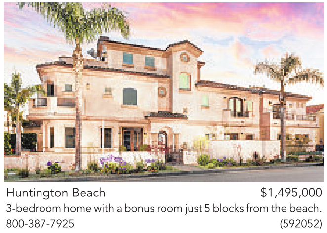 Huntington Beach $1,495,000 3-bedroom home with abonus room just 5blocks from the beach. 800-387-7925 (592052)