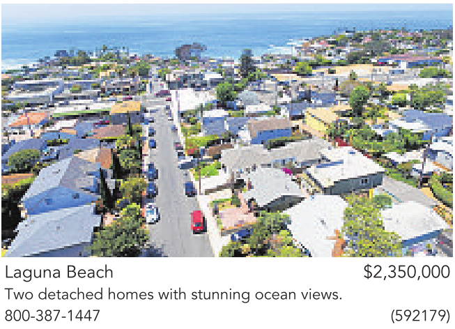 Laguna Beach $2,350,000 Two detached homes with stunning ocean views. 800-387-1447 (592179)