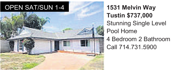1531 Melvin Way Tustin $737,000 Stunning Single Level Pool Home 4 Bedroom 2 Bathroom Call 714.731.5900