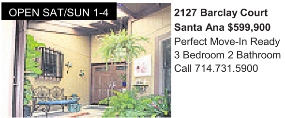 OPEN SAT/SUN 1-4 2127 Barclay Court Santa Ana $599,900 Perfect Move-In Ready 3 Bedroom 2 Bathroom Call 714.731.5900