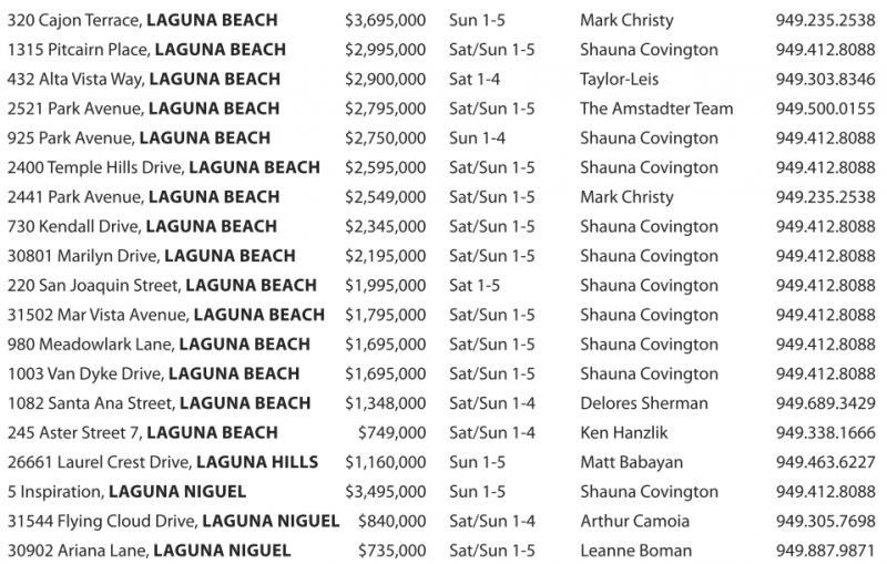 730 Kendall Drive, LAGUNA BEACH $2,345,000 Sat/Sun 1-5 Shauna Covington 949.412.8088