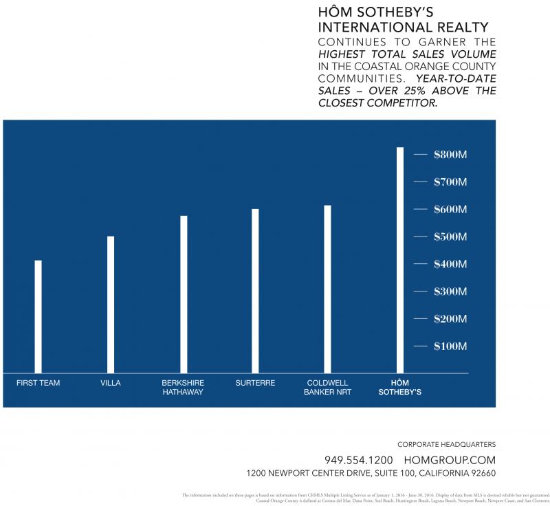 CONTINUES TO GARNER THE HIGHEST TOTAL SALES VOLUME IN THE COASTAL ORANGE COUNTY COMMUNITIES. YEAR-TO-DATE SALES – OVER 25% ABOVE THE CLOSEST COMPETITOR.