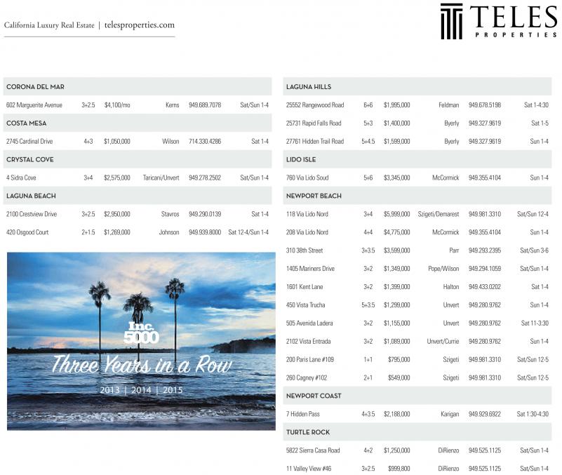 4Sidra Cove 3+4 $2,575,000 Taricani/Unvert 949.278.2502 Sat/Sun 1-4