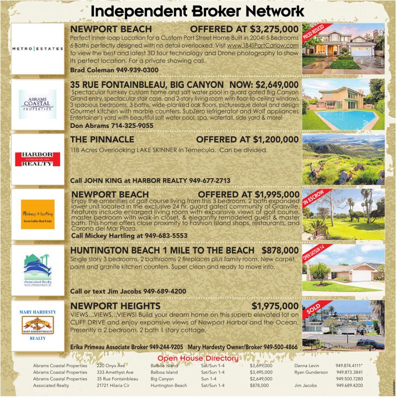 Associated Realty 21721 Hilaria Cir Huntington Beach Sat/Sun 1-4 $878,000 Jim Jacobs 949.689.4200