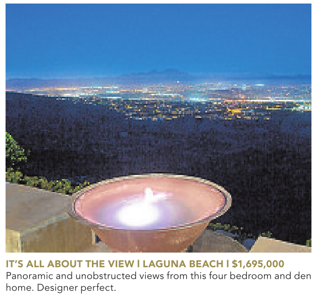 IT’S ALL ABOUT THE VIEW l LAGUNA BEACH l $1,695,000 Panoramic and unobstructed views from this four bedroom and den home. Designer perfect.