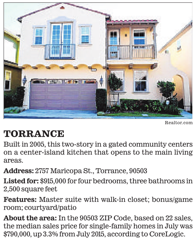 TORRANCE Built in 2005, this two-story in a gated community centers on a center-island kitchen that opens to the main living areas.