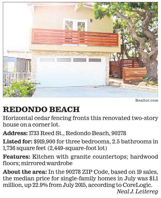 About the area: In the 90278 ZIP Code, based on 19 sales, the median price for single-family homes in July was $1.1 million, up 22.9% from July 2015, according to CoreLogic.