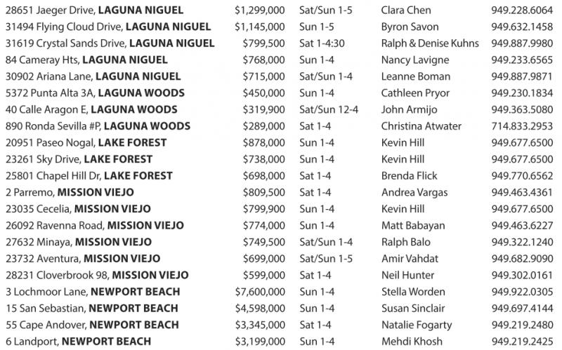31619 CrystalSands Drive, LAGUNANIGUEL $799,500 Sat1-4:30 Ralph &Denise Kuhns 949.887.9980