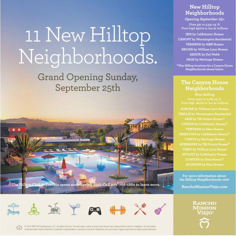 The Hilltop Club at Esencia opens early Spring 2017. Call 949-768-1882 to learn more.