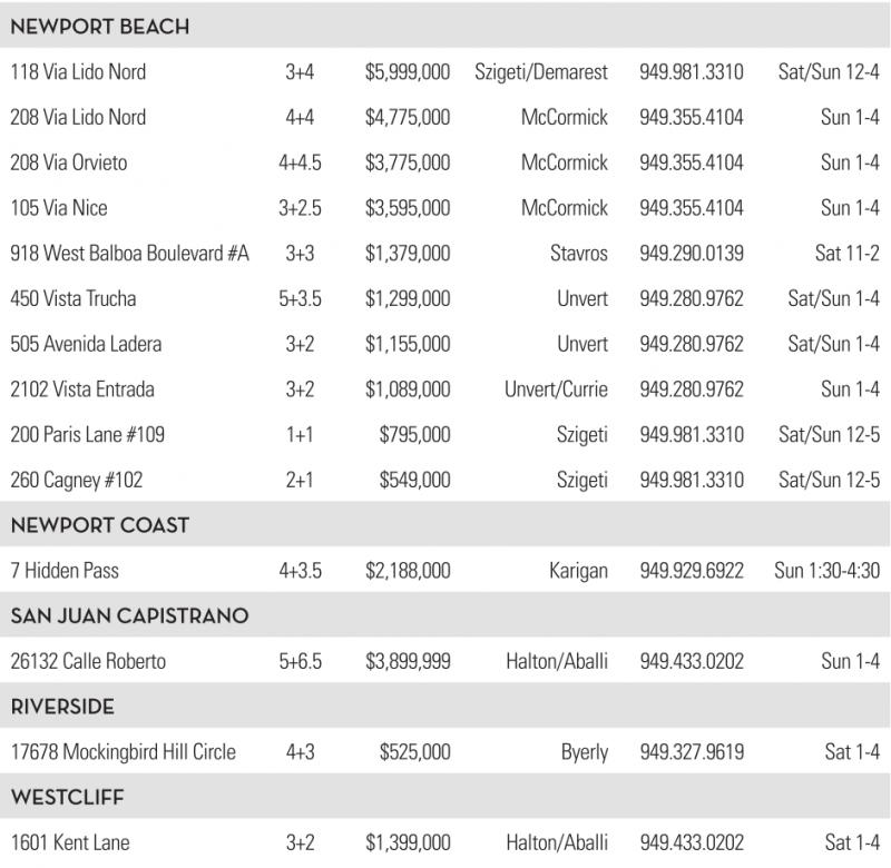 118 ViaLido Nord 3+4 $5,999,000 Szigeti/Demarest 949.981.3310 Sat/Sun 12-4