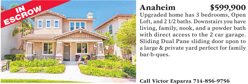 Loft,and 21/2 baths. Downstairs youhave living, family, nook, and a powder bath with direct access to the 2 car garage. Sliding Dual Pane sliding door upon to alarge &private yard perfect forfamily bar-b-ques.