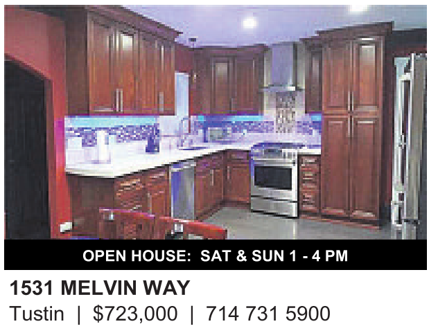 OPEN HOUSE: SAT & SUN 1 - 4 PM 1531 MELVIN WAY Tustin | $723,000 | 714 731 5900 See also