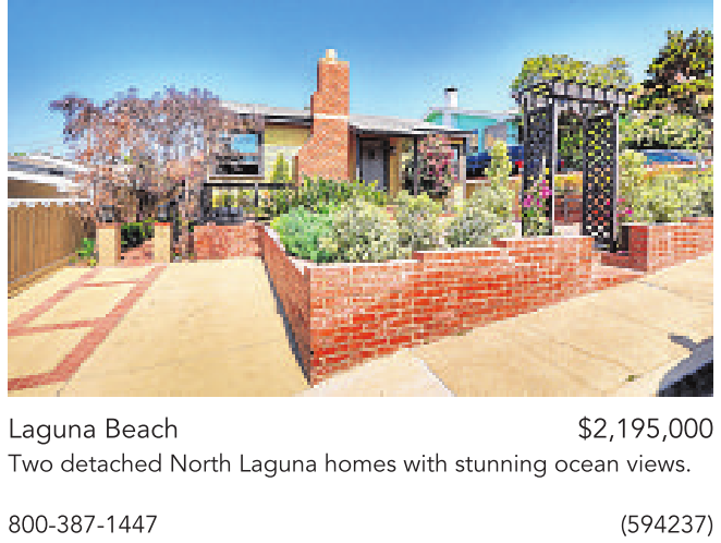 Laguna Beach $2,195,000 Two detached North Laguna homes with stunning ocean views.