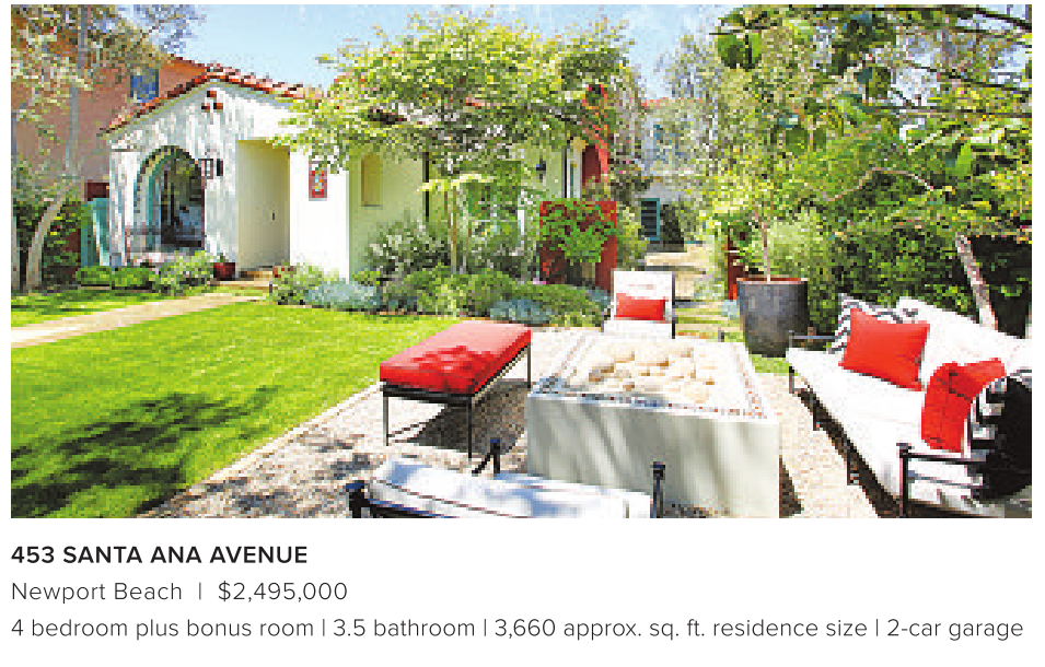 453 SANTA ANA AVENUE Newport Beach | $2,495,000 4 bedroom plus bonus room | 3.5 bathroom | 3,660 approx. sq. ft. residence size | 2-car garage