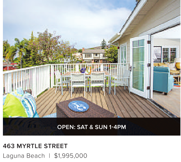 OPEN: SAT &SUN 1-4PM 463 MYRTLE STREET Laguna Beach | $1,995,000 See also