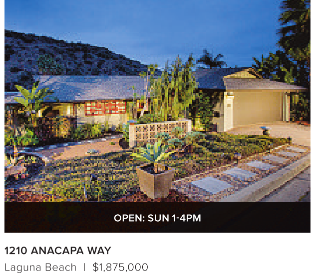 OPEN: SUN 1-4PM 1210 ANACAPA WAY Laguna Beach | $1,875,000 See also