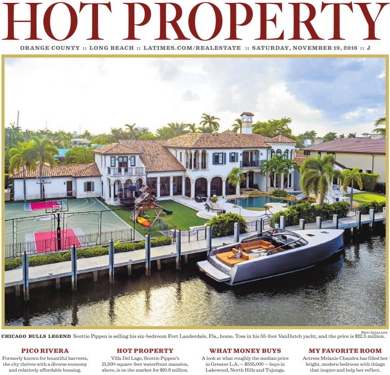Eric Igualada CHICAGO BULLS LEGEND Scottie Pippen is selling his six-bedroom Fort Lauderdale, Fla., home. Toss in his 55-foot VanDutch yacht, and the price is $12.5 million.