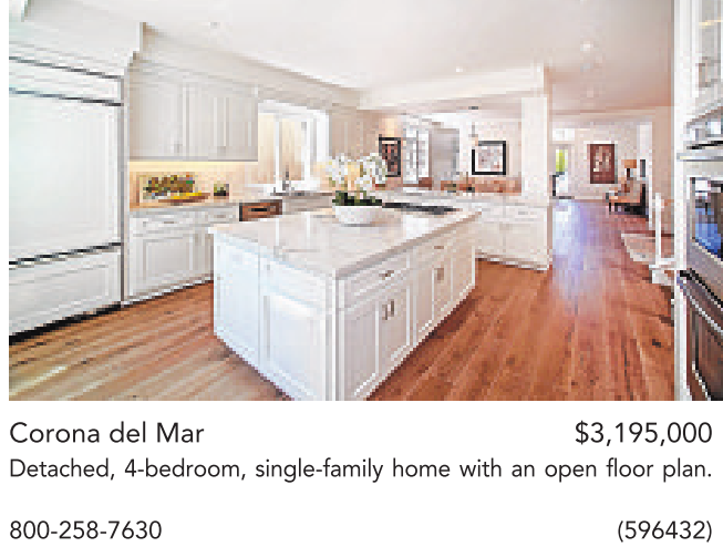 Corona del Mar $3,195,000 Detached, 4-bedroom, single-family home with an open floor plan.