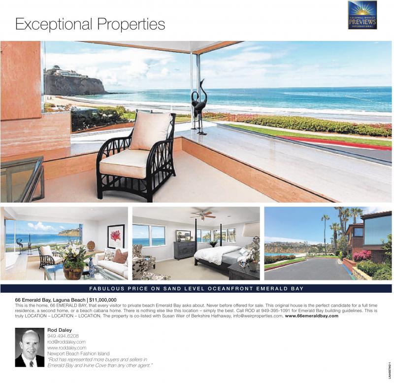 Rod Daley 949.494.6208 rod@roddaley.com www.roddaley.com Newport Beach Fashion Island “Rod has represented more buyers and sellers in Emerald Bay and Irvine Cove than any other agent.”