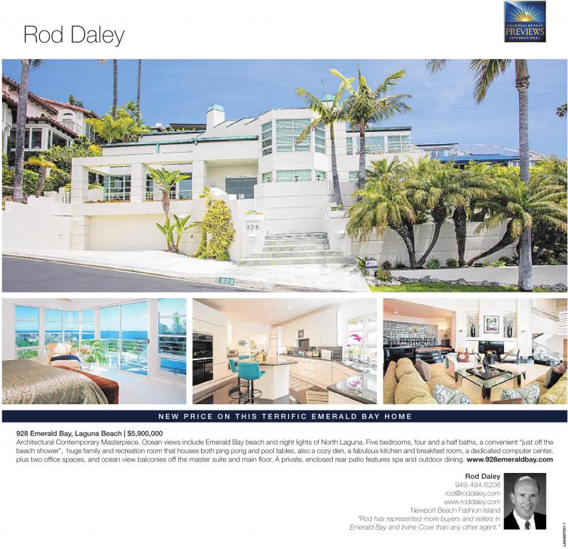 Rod Daley 949.494.6208 rod@roddaley.com www.roddaley.com Newport Beach Fashion Island “Rod has represented more buyers and sellers in Emerald Bay and Irvine Cove than any other agent.”