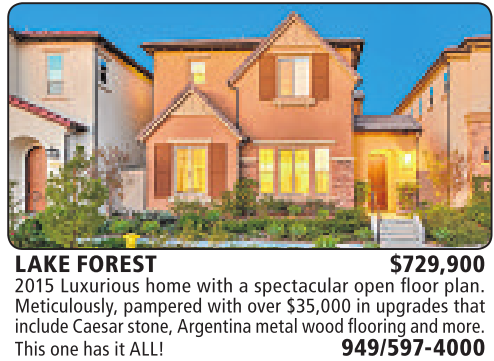 LAKE FOREST $729,900 2015 Luxurious home with a spectacular open floor plan. Meticulously, pampered with over $35,000 in upgrades that includeCaesarstone,Argentina metal wood flooring and more. This one hasitALL! 949/597-4000