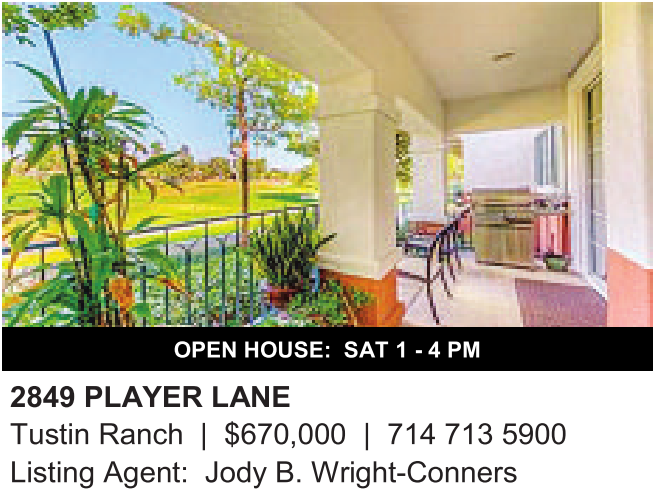 2849 PLAYER LANE Tustin Ranch | $670,000 | 714 713 5900 Listing Agent: Jody B. Wright-Conners