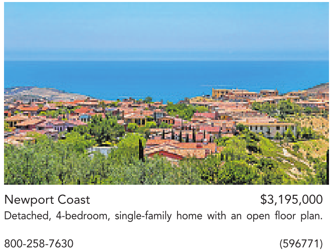 Newport Coast $3,195,000 Detached, 4-bedroom, single-family home with an open floor plan.